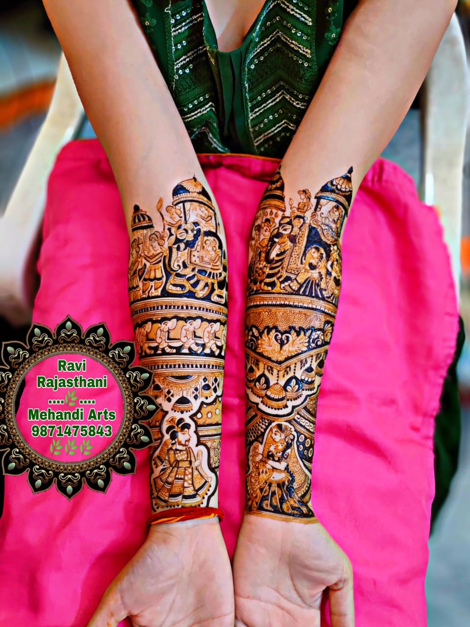 Ravi Rajsthani Mehandi Arts offers you a unique new generation mehndi art and design service, combining elegance and sophistication, adding the magic touches for that very special occasion. We can incorporate any style or create a bespoke design from Arabic, traditional Indian, Moghul to more contemporary, modern designs using a touch of glitter and coloured gems to accentuate the hues of the chosen outfit.