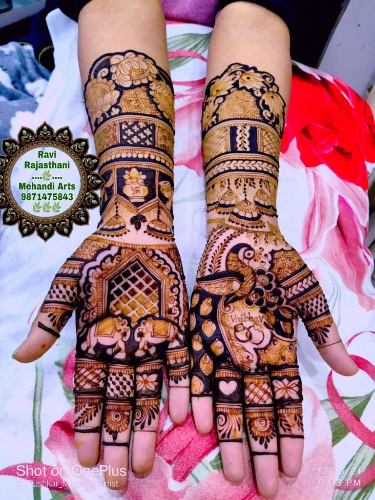 Ravi Rajsthani Mehandi Arts offers you a unique new generation mehndi art and design service, combining elegance and sophistication, adding the magic touches for that very special occasion. We can incorporate any style or create a bespoke design from Arabic, traditional Indian, Moghul to more contemporary, modern designs using a touch of glitter and coloured gems to accentuate the hues of the chosen outfit.