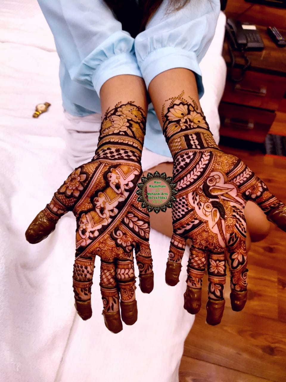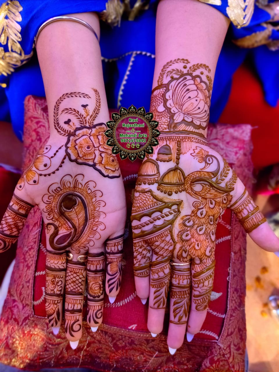Stylish mehandi designs, Stylish mehandi artists in Delhi, Stylish mehandi artists near me, Stylish mehandi artist with prices in Delhi. Stylish mehandi designs are the most popular mehandi designs at present. Bridal, groom, women and girls all are fond of applying stylish mehandi designs in all the functions because their creativity is unique and amazing which is suitable for all functions and both hands and feet. There are various designs which are applied in stylish mehandi designs. You can choose any type of design which will be applied with different styles and designs. That can be images of anything which will be pasted on your hands and on your feet. Stylish mehandi is that mehandi designs which attract the attention of people and which look great that can not be beaten. If you are searching for any professional and well experienced stylish mehandi artists for any functions then without thinking and waste of your time you should contact Ravi Rajsthani Mehandi Arts who have well experienced and professional artists. You can get 100% satisfaction with an affordable budget. Ravi Rajsthani Mehandi Arts have been working for 25 years in different parts of India.